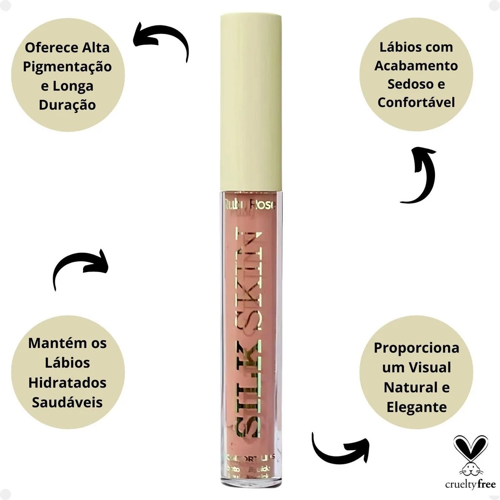 O Batom Líquido Silk Skin Batom Líquido da Ruby Rose possuem cores incríveis com acabamento aveludado e sofisticado. Sua fórmula inovadora proporciona um efeito blur, suavizando as linhas dos lábios para um visual impecável.
